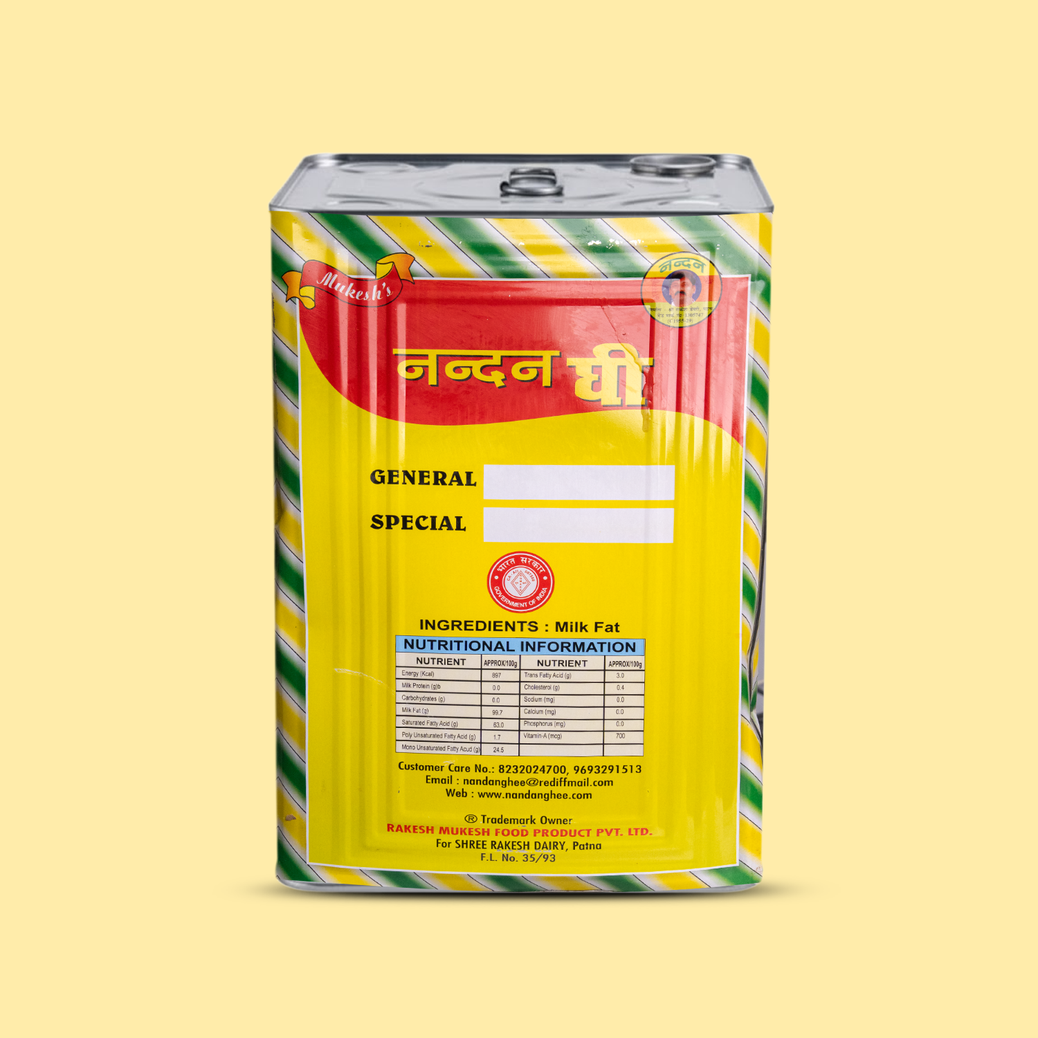 Nandan Cow Ghee / Desi Ghee – 15kg Tin Pack