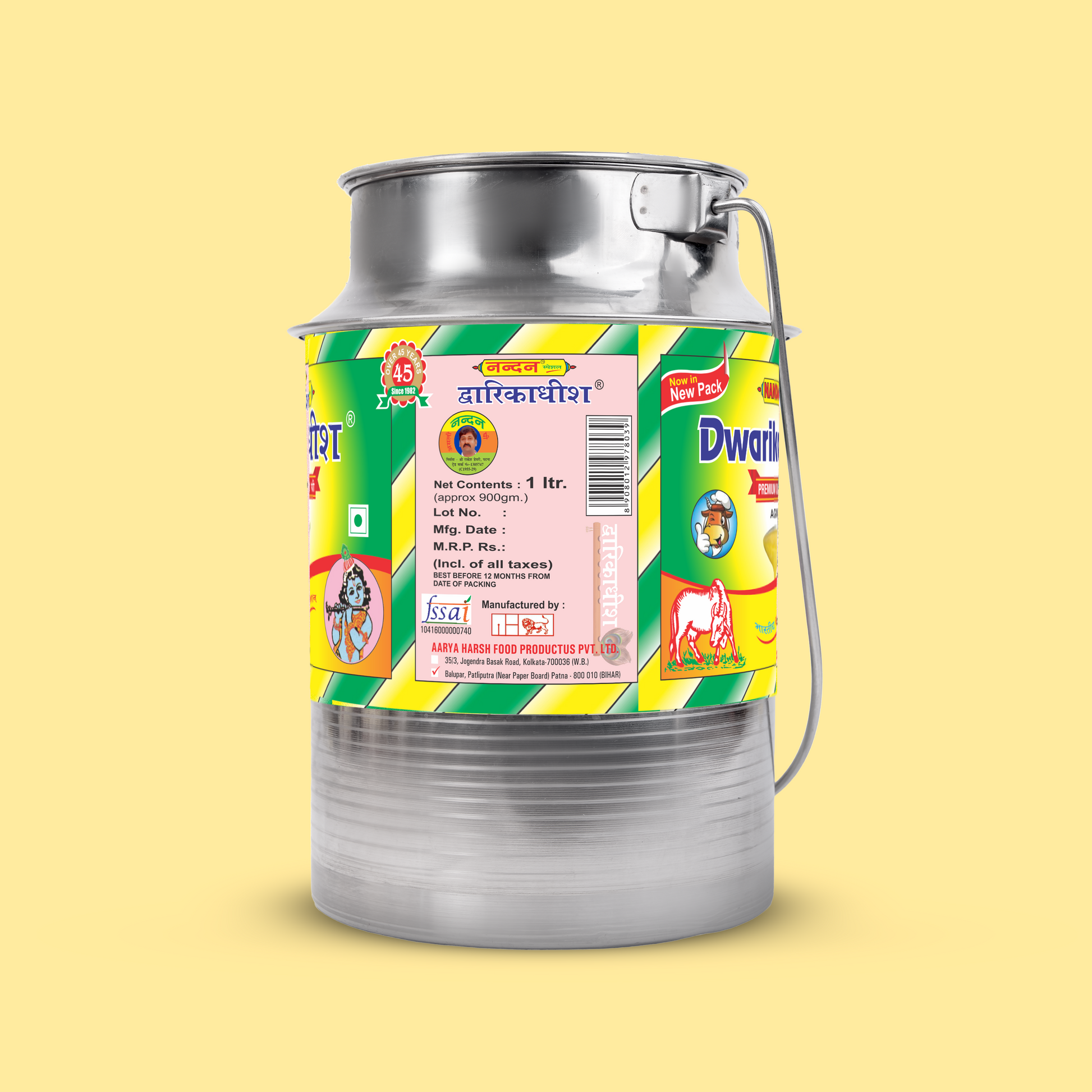Inspired by the divine purity of tradition, Nandan Dwarika Dhish Ghee is crafted to embody the essence of wholesome nourishment and sacred taste. Made from high-quality cow’s milk using traditional methods, it’s rich in Vitamin A, Omega-3 & 9 fatty acids, and essential minerals like calcium and phosphorus. Known for its nutty aroma and golden texture, this ghee not only elevates the flavour of your meals but also strengthens immunity, promotes heart and joint health, and supports overall well-being. Each spoonful reflects devotion, purity, and the timeless legacy of Indian heritage.
